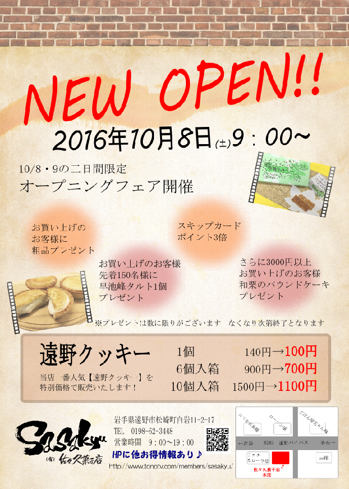 9/20は遠野祭りのため、お休みさせていただきます。